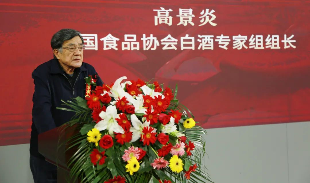 花冠集團(tuán)董事長劉念波先生向中國食品工業(yè)協(xié)會白酒專家組組長高景炎先生頒發(fā)“花冠年份老酒品質(zhì)大使”聘任證書